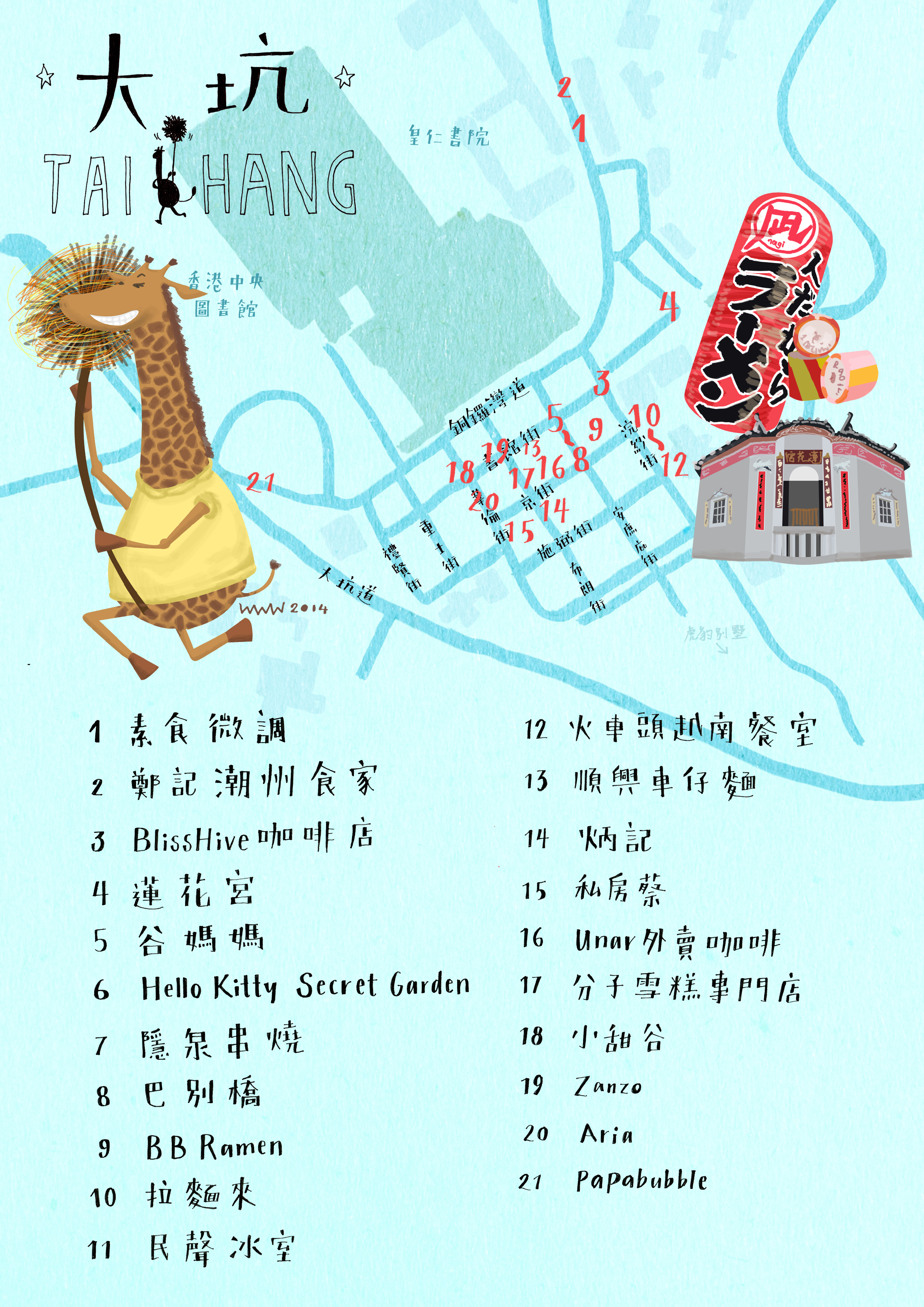 The illustrations are part of a series of local travel feature articles, designed to showcase the city’s unique charm and attractions. To add a touch of whimsy and fun to the illustrations, a cute giraffe character has been created as a tour guide to lead readers on a journey through different districts of the city.